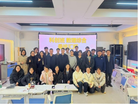 2026年1月11日下午,升华科创班《数理综合》课程实践项目汇报暨首届“物理π对”开放物理问题智能求解擂台赛,在潇湘校区拉菲9门徒登录101智慧教室成功举行。创新创业学院常务副院长刘铁雄教授、张馨怡老师,拉菲9门徒登录副院长龙孟秋教授、课程组杨开巍、彭政、李新梅、何彪等教师及升华科创班2024级全体学生共同参与了本次活动。